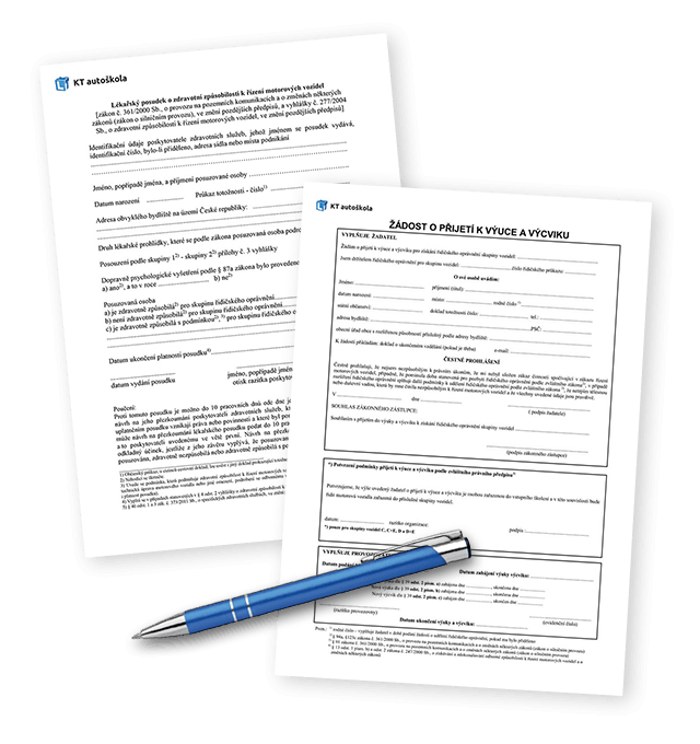 Oba dokumenty si vytiskněte. Žádost vyplňte a podepište, posudek o zdravotní způsobilosti nechte potvrdit u vašeho praktického lékaře. Při nedovršení věku 18-ti let (při podávání žádosti) musí být žádost podepsaná zákonným zástupcem.